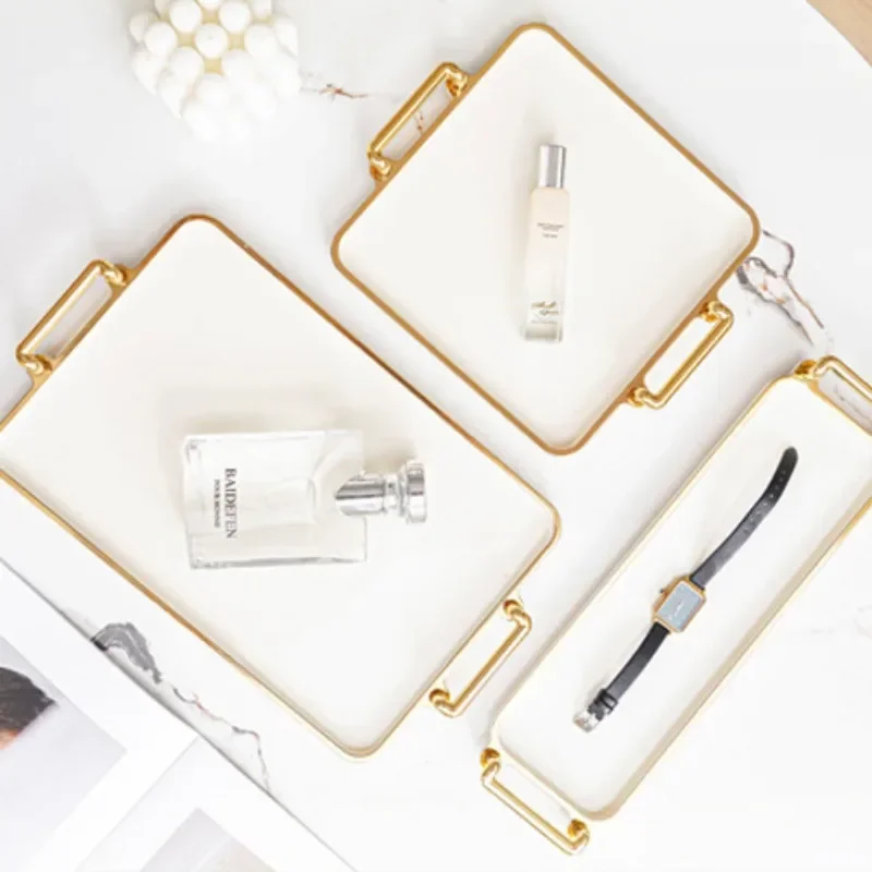 This light luxury rectangular storage tray offers a sophisticated way to organize and display your everyday essentials. Its sleek, elegant design enhances any space, whether placed in the living room, bedroom, bathroom, or vanity area. Perfect for holding cosmetics, perfumes, jewelry, or water cups, it adds both style and functionality to your home. The smooth surface and clean lines create a modern, upscale look that blends seamlessly with contemporary décor. Durable and easy to maintain, it’s ideal for daily use in apartments, hotels, or home interiors. Its raised edges help keep items securely in place, preventing spills and clutter. Lightweight yet sturdy, it can be moved effortlessly wherever you need extra organization. Whether used as a decorative accent or practical organizer, this luxury tray elevates your space with refined simplicity.
