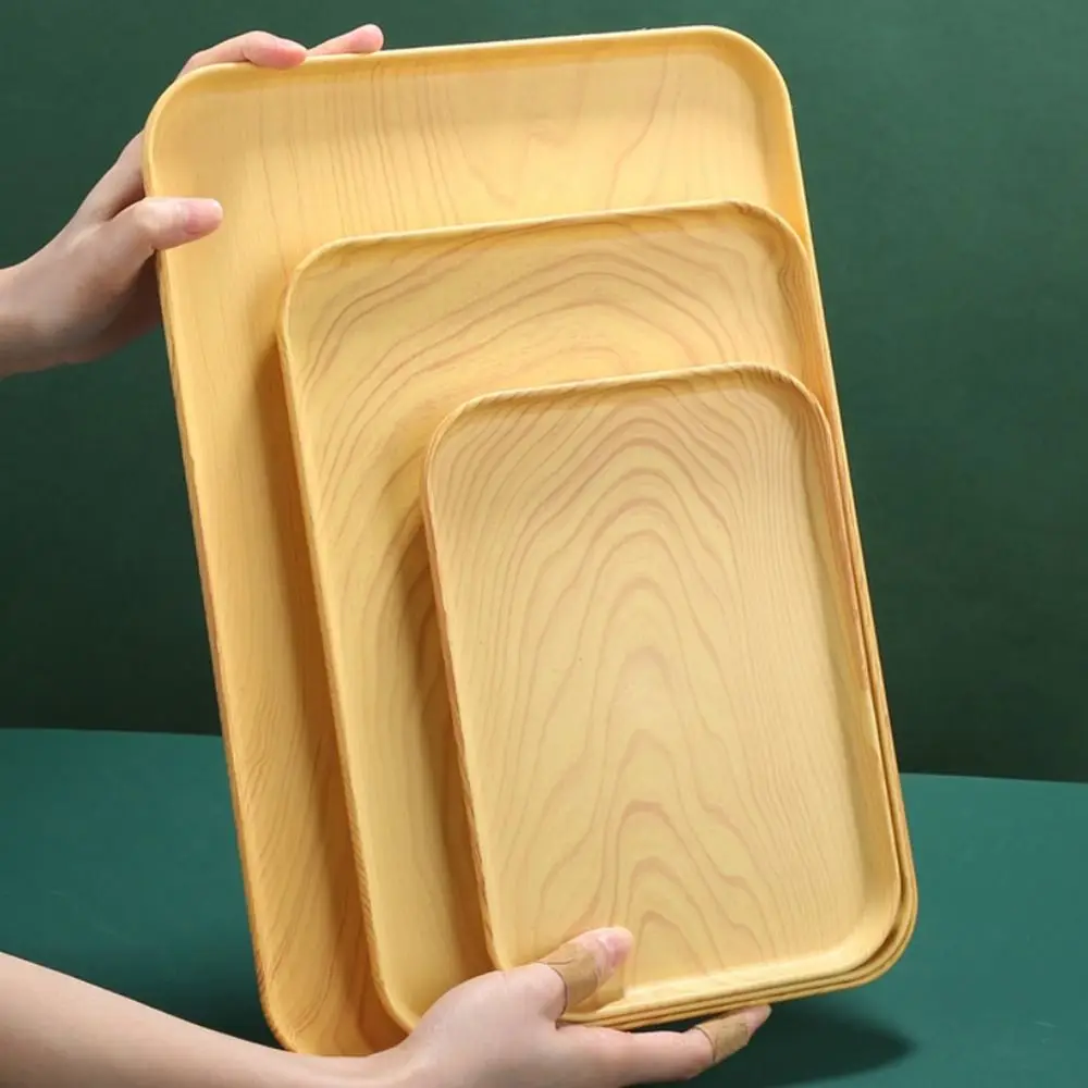 This Nordic rectangular serving tray combines the beauty of natural wood with the durability of high-quality plastic. Its imitation wood finish adds a warm, modern touch to any home setting. Lightweight yet sturdy, it’s perfect for serving fruit, coffee, tea, snacks, or meals with ease. The raised edges help prevent spills and keep items securely in place while you carry the tray from room to room. Its smooth, easy-to-clean surface makes it ideal for everyday use in kitchens, dining rooms, and living areas. The minimalist design blends effortlessly with a variety of décor styles. Versatile and practical, it can also be used as a storage tray for organizing countertops, tables, or shelves. Whether for daily serving or decorative display, this tray brings both style and convenience to your home.